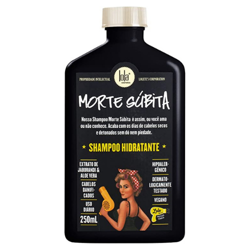 Shampoo para cabelos danificados. Lola Cosmetics Morte Súbita Home Care elimina o ressecamento e reforça os fios com desembaraço e suavidade. Lola Cosmetics Morte Súbita Home Care limpa o cabelo de forma suave enquanto repõe a hidratação e a nutrição necessárias para a elasticidade dos fios, alinhamento das cutículas, maciez e o fim do frizz.